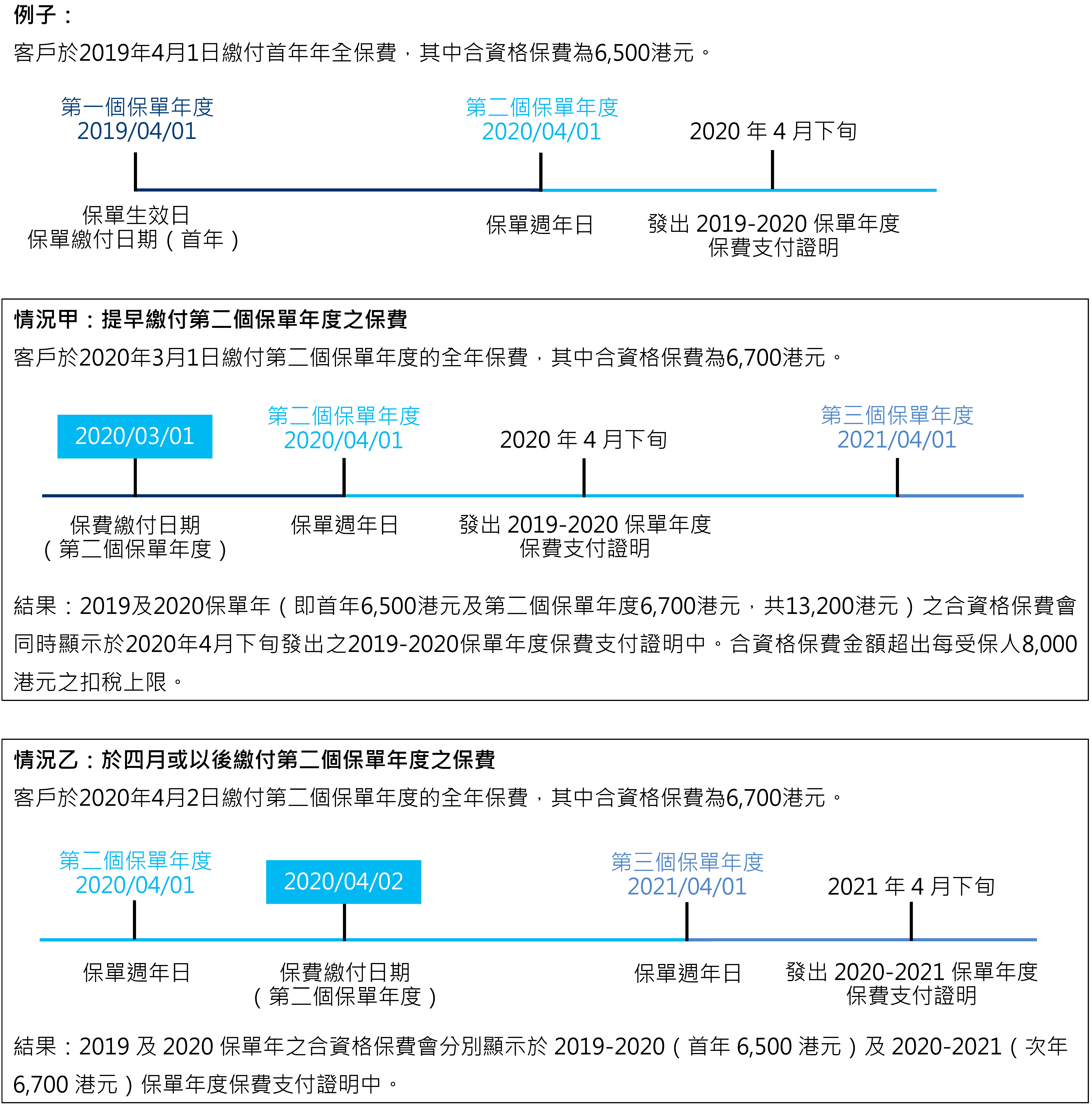 - 有關稅務扣除詳情,請瀏覽香港特別行政區政府自願醫保計劃網頁 www.vhis.gov.hk/tc/consumer_corner/tax-deduction.html